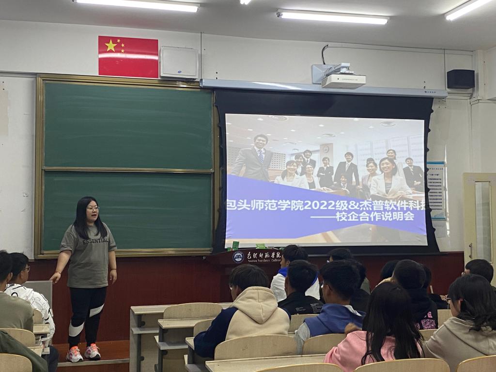 吉晋菲老师主要针对信息与计算科学专业向新生介绍校企合作培养模式,基地学习、生活概况,“教学、学生、就业”三线一体项目制管理等内容,重点介绍了技术专家讲授、项目经理辅导等特色优势服务,为学生做好学业职业规划,端正专业思想打下了坚实的基础。