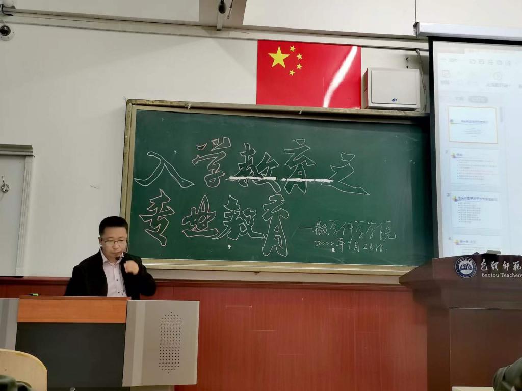 徐国明副院长主要针对数学与应用数学专业向新生介绍包头师范学院学分制实施细则、全日制本科毕业生学士学位授予工作实施细则、学生考试违纪行为认定规范、数学与应用数学专业2019版人才培养方案等,让新生在入学之际就清楚地了解到专业学科背景、培养目标、课程体系、实习就业等内容。同时,徐国明副院长重点讲述了数学与应用数学专业的毕业去向,就考研、教师考录应储备的知识和能力提升方向做了详细全面的介绍。