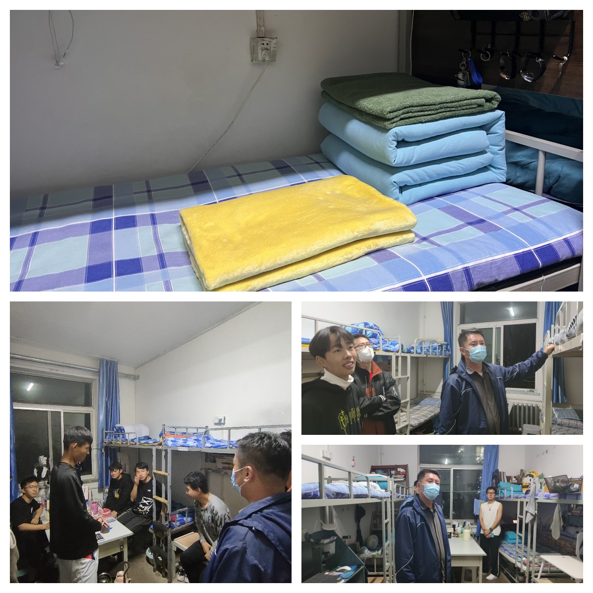 本次检查发现大部分学生宿舍环境整洁,符合我院内务管理的标准,其中315宿舍郭艳文同学的行李整理受到了高书记的高度表扬。作为退伍士兵,在部队养成良好的习惯,床铺整洁,棱角分明,体现出退伍军人极强的纪律性。高书记提倡同学们也要以郭艳文同学为榜样,做好内务管理。同时,高书记强调要规范使用宿舍设施,保证宿舍安全,呼吁同学们努力学习的同时也要适当放松,做到劳逸结合。最后,高书记强调,在疫情防控的特殊期间,同学们要积极配合学校防疫工作,及时进行核酸检测和打卡。