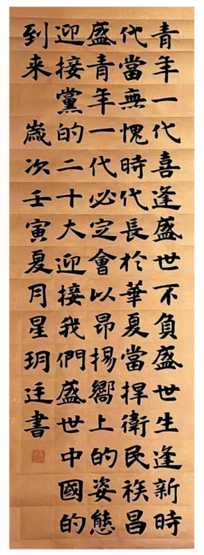 本次微展在众多来稿作品中择取20幅优秀的书法作品进行线上展示。这些作品主题鲜明、立意新颖、风格各异,追求真善美、传递正能量,抒发了广大学生对党和人民的挚爱和对国家现代化建设新征程关切的人文情怀。