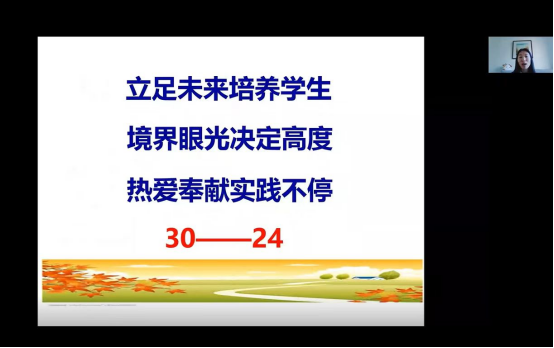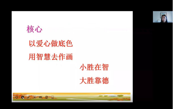 金英华老师认为新时代教师应做到教学、管理、科研三位合一,鼓励同学们勇敢成为一名班主任,并将自己多年授课积累的经验分享给了大家。她以2002级毕业生和2020级学生为例,为同学们详细地阐述了身为班主任拥有共情能力和组织管理能力的重要性。金老师一直秉承着“立足未来培养学生,境界眼光决定高度,热爱奉献实践不停”的教学要求,认为作为一名教师的核心是“用爱心做底色,用智慧作画,小胜在智,大胜靠德”。