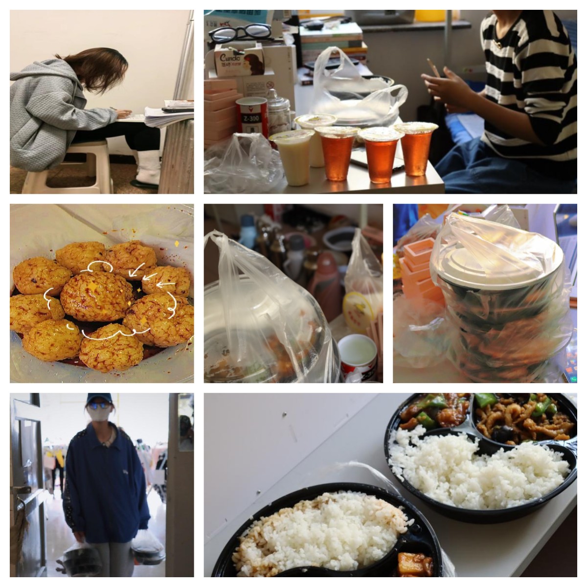 疫情封控下的大学生活,是凭“通行卡”进出公寓,是一个人排队打饭,是每天都要进行核酸检测,也是待在宿舍的日复一日,宿舍的小天地成为了我们的防护墙和心灵的慰藉。虽然与原本的生活相比差了点趣味,但作为新时代大学生的我们,要以积极的心态面对生活,拒绝emo。停课不停学,叮~开始上课啦!同学们陆续进入课堂,开始一天的学习。做笔记、做练习、读英语、背单词……虽身处疫情之下,同学们仍勤奋认真,毫不懈怠,不断提高线上学习的效率;疫情当前,健康的心态和强健的体魄也是自我保护的强大力量。在这种情况下,为了缓解情绪压力,同学们把生活过出了多姿多彩,看电影、学绘画、练书法……;虽不能出宿舍,但运动健身也没落下。面对一天天好起来的伙食,看着体重秤上增加的数字,同学们都运动起来,进行各类室内运动,俯卧撑、仰卧起坐、太极、各类拉伸运动……;生命不息,运动不止。在饮食和生活方面,学校也积极协调食堂和超市进行物资供应,水果、营养餐……色香味俱全。隔离阻挡的是病毒,保护的却是彼此之间的爱。
