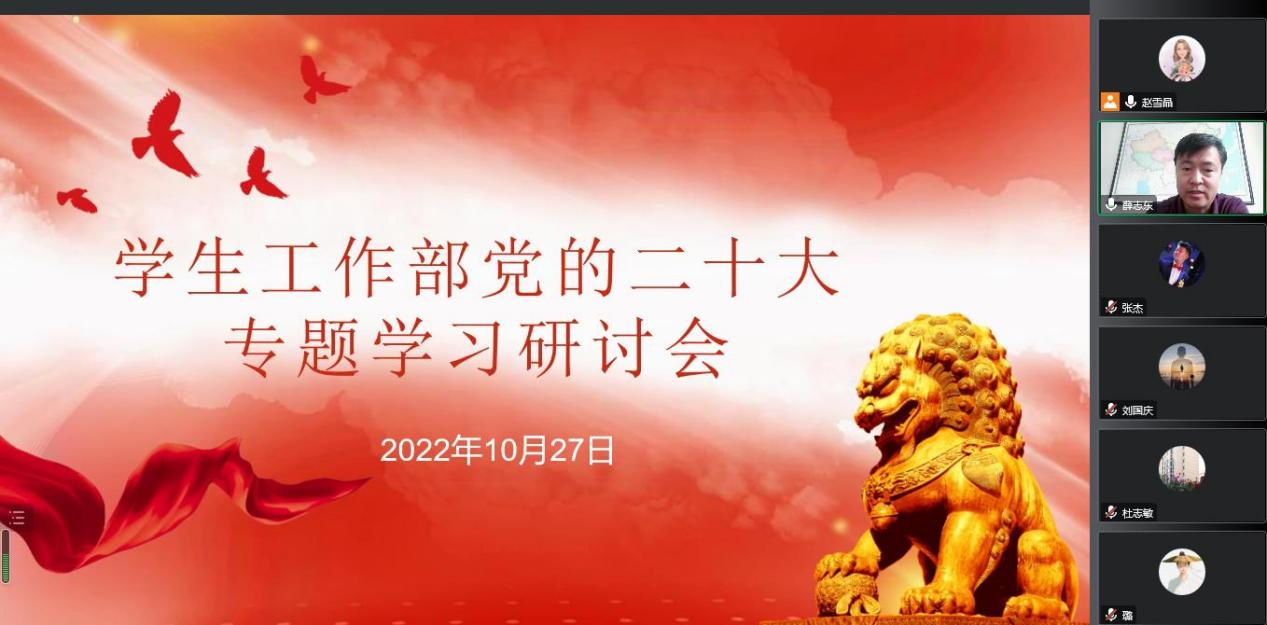 10月27日上午,学生工作部党支部以腾讯视频会议的形式召开党的二十大精神专题学习研讨会。
