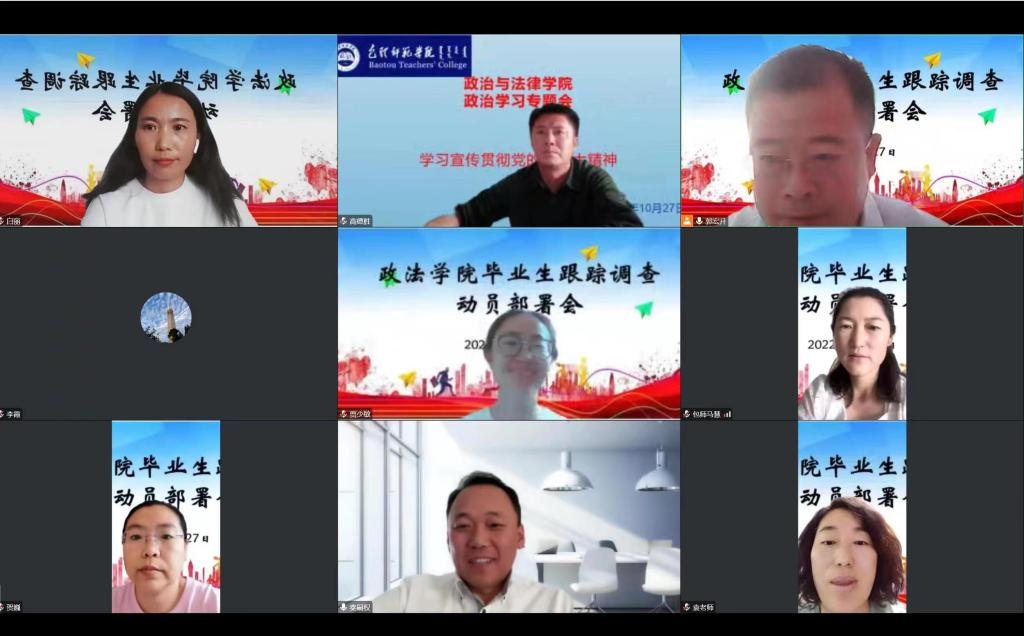 为全面了解政法学院近三年毕业生就业情况,准确掌握人才培养质量和就业指导服务工作水平,10月27日下午,政法学院在腾讯会议上召开了毕业生就业跟踪调查动员部署会。学院党总支书记高德胜、副院长李霞、系主任、2019-2021届毕业生班主任和辅导员参加了会议。会议由党总支副书记郭宏升主持。