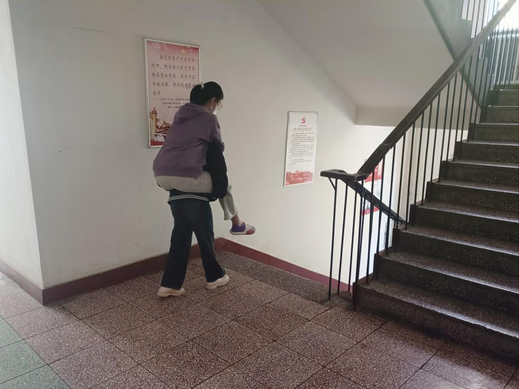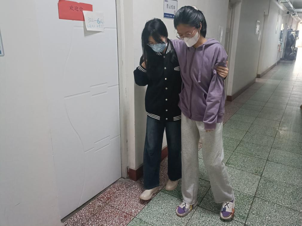 为积极配合疫情防控安排,包头师范学院严格按照疫情防控要求,坚持每天对全体在校师生进行核酸检测,学生公寓七号楼323舍21生物技术班李梦梦不慎崴脚,这给她去做核酸的路上带来许多不便,但其舍友王佳文每天背着李梦梦去做核酸,无私奉献,令人感动。