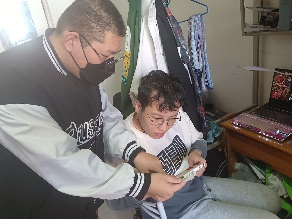 赵烨鑫同学在分发药品