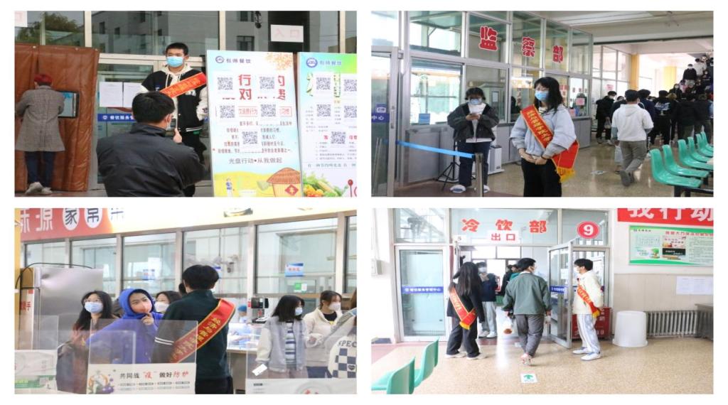 学校解除静默,学生开始在校园里有序流动。经管学院志愿者的工作是在食堂进行疏导,他们组织有序,各司其职,开展日常巡逻、定点监督,引导学生重视和配合学校疫情防控措施。