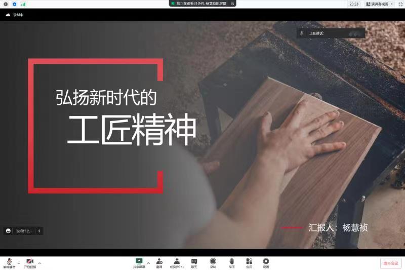 为了引导2022级新同学学党史、强信念、跟党走,帮助同学们树立严谨认真、追求极致的“工匠精神”,信息科学与技术学院于11月4日晚上20:0通过腾讯会议平台开展了以“弘扬新时代工匠精神”为主题的学习分享会。本次宣讲活动由21级外包班杨慧祯同学分享学习内容,全体2022级学生参加。