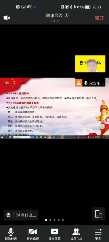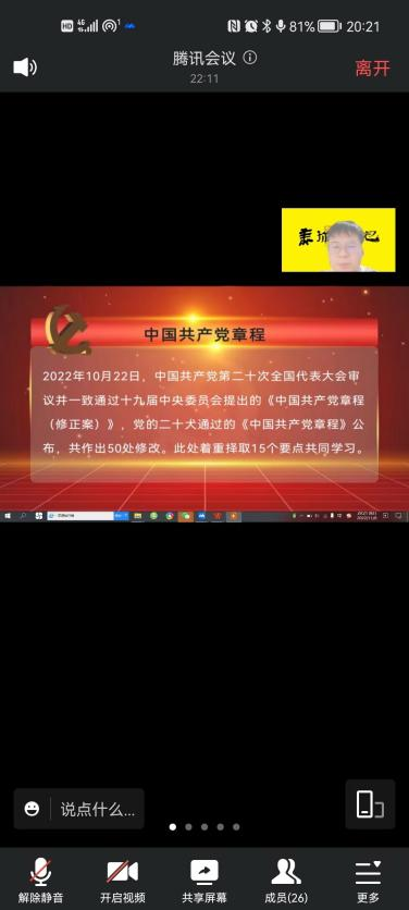 11月6日下午,美术学院学生党支部书记宋安东带领26名学生党员同志共同学习了党的二十大新修订的《中国共产党章程》,旨在通过领学使各位学生党员同志紧跟时政,加深对新党章的理解认识。