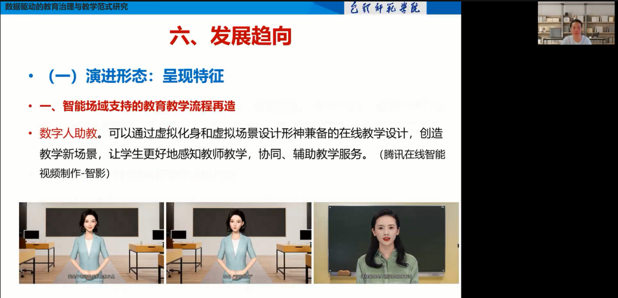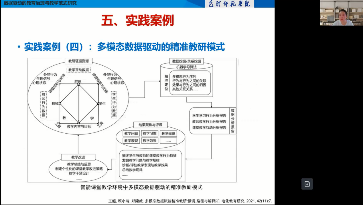于博士从数据与技术融合的角度,对数据赋能教育治理能力提升和教学实践创新的研究问题、逻辑机理、技术框架和实践方案进行了详细阐述。于博士的分享对老师们了解该领域的研究现状和研究成果等起到了重要作用。特别是最后对该领域研究问题的反思和发展趋势的展望,为我校进行教育数字化转型、教学改革与创新提供了新的思路。