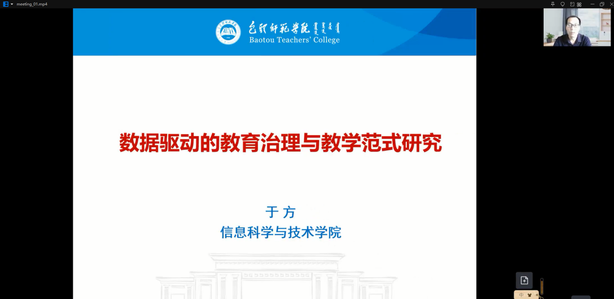 11月10日下午,由科技处主办、信息学院承办的“博士论坛”以线上汇报的形式成功举办。会议由信息学院院长马占飞主持,来自信息学院和其他学院的师生代表40余人参加了本次论坛。本次报告的主题为数据驱动的教育治理与教学范式研究,主讲人为于方博士。于方博士研究方向为教育数据挖掘与学习分析、教育信息化,主持内蒙古自然科学基金项目等科研和教改项目10余项,发表学术论文20余篇,曾获得内蒙古高等教育学会优秀论文特等奖、自治区青年教师讲课大赛二等奖等多项奖励。。