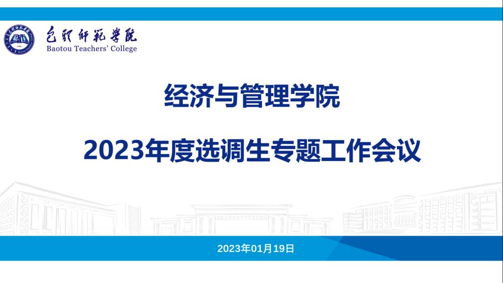 为扎实做好2023年度内蒙古自治区选调生推荐报名工作,充分利用政策性岗位需求,促进学院毕业生更充分、更高质量的就业,1月19日,经济与管理学院召开2023年度内蒙古自治区选调生推荐报名专题工作会议。院党总支书记李灵芝、党总支书副书记赵洪宝、副院长李建忠,院办、学工办全体工作人员,2021-2023届毕业班班主任参加。党总支书记李灵芝主持会议。
