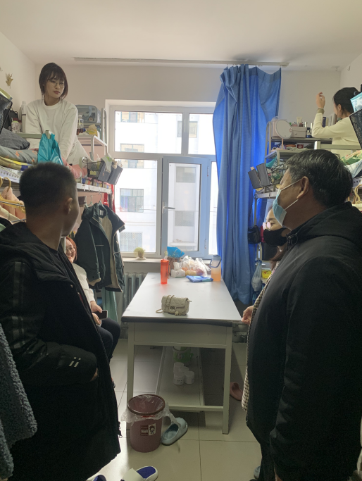 为及时了解学生返校情况和思想动态,在2月24日下午和2月26日下午,党总支书记赵玉强与辅导员、班主任走访学生宿舍,实地了解学生在宿舍的学习、生活、心理等情况,为学生送去关心和问候。走访过程中,大家首先详细了解学生的身体健康状况、新学期愿望和需求,与同学们进行深入亲切的交流,其中尤为注重关心同学们在生活中遇到的问题,并耐心地解答给予帮助。同学们也积极回应,就日常生活、未来规划与老师们展开交流讨论。