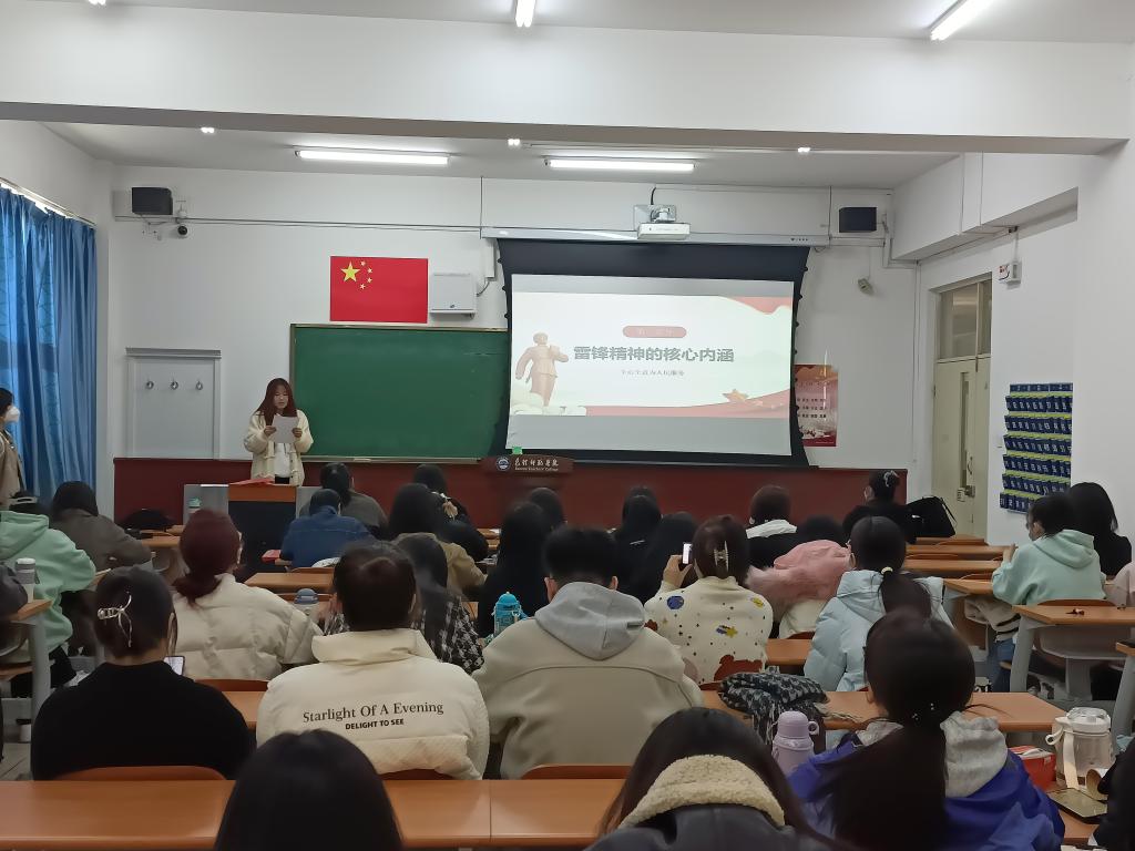 主题党日活动。2022年3月2日,学生党支部在博西101开展了“传承雷锋精神,弘扬时代新风”主题党日活动,学生第二支部书记方丽慧和41名学生党员参加了此次活动。本次活动共有三项议程。首先,全体党员集体学习了习近平对深入开展学雷锋活动作出重要指示,并观看了“雷锋精神——永不褪色的精神坐标”视频。其次,党员代表进行领学。一支部学生党员张小娟带领大家学习文章《用60年建一座“雷锋城”:把他的精神代代传承下去》。同学们了解到在雷锋的第二故乡抚顺,用60年的坚守,筑起一座“雷锋城”,人们讲着雷锋的故事,读着雷锋的文字,以实际行动把雷锋精神代代传承下去。在这里,雷锋似乎从未离开。最后,党员代表进行交流研讨。同学们分别围绕“雷锋精神的时代内涵和核心价值”、“新时期如何学习和践行雷锋精神”等方面进行深入交流。周晓帆同学指出新时代学习雷锋热爱党、热爱祖国、热爱社会主义的崇高理想和坚定信念,就是要做真学真懂真信真用马克思主义的表率,用新时代中国特色社会主义思想筑牢信仰之基、补足精神之钙,并自觉地把个人的追求和奋斗同党的事业、国家的命运、民族的前途联系起来,为国家的繁荣发展贡献自己的智慧和力量。闫佳荟同学表示学习弘扬雷锋干一行爱一行、专一行精一行的敬业精神,也要学习弘扬雷锋锐意进取、自强不息的创新精神,将爱党、爱国和爱社会主义高度统一。