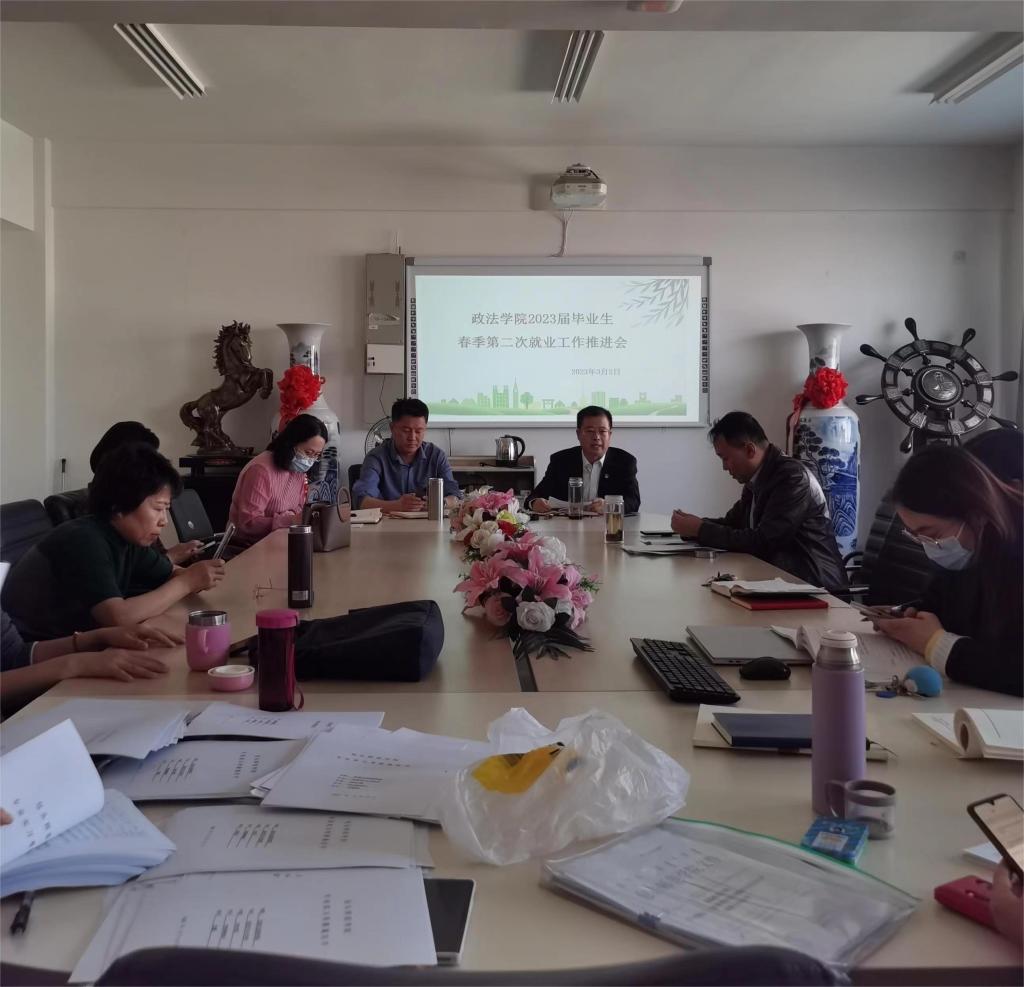 为抢抓春季开学后促就业工作的关键期,全力促进毕业生顺利就业,3月2日下午,政法学院在博学楼729会议室召开了2023届毕业生春季第二次就业工作推进会。学院党总支书记高德胜、副书记郭宏升、副院长李霞和全体教师参加了会议。