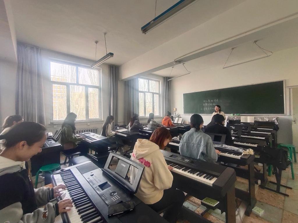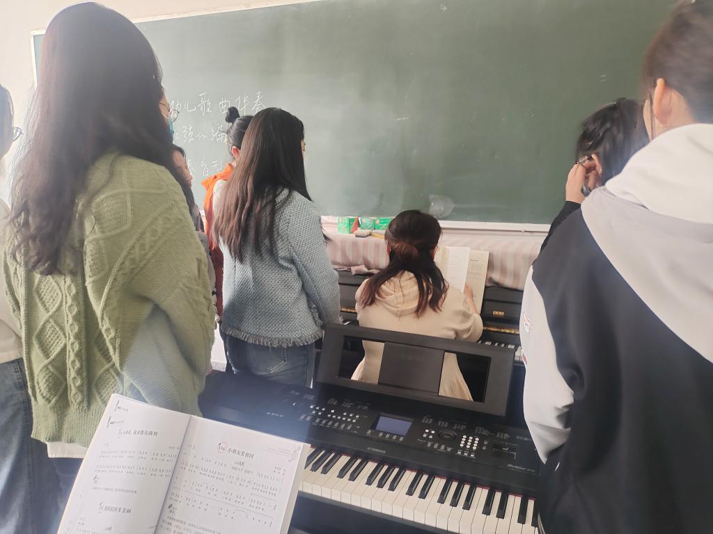 为深入学习习近平新时代中国特色社会主义思想和党的二十大精神,努力践行“爱包头,作贡献”主题实践活动,在九原区、昆区教师招考到来之际,为提升学生的教师招考面试能力,提高应届毕业生弹唱技巧和即兴伴奏技能,增强面试信心,3月9日下午,教育科学学院教工二支部石翠花老师开展了即兴伴奏教育指导活动,共有20名备考学生参加了本次辅导。