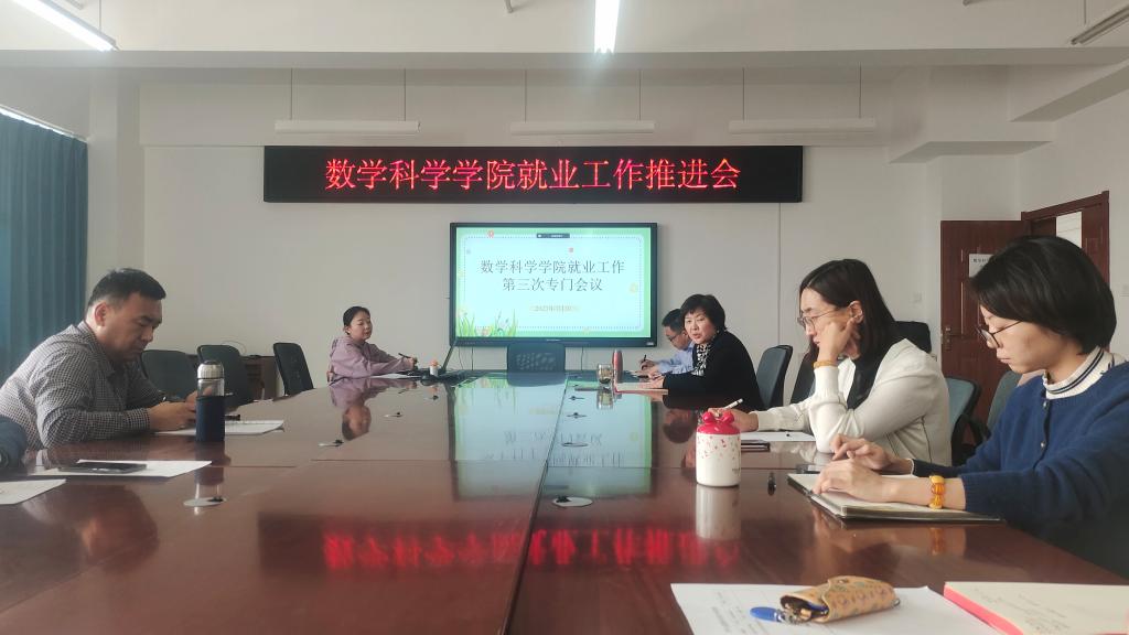 数学科学学院正在举全院之力做好今年的稳就业工作,确保就业局势持续稳定向好。朱丽书记对接下来的就业重点工作进行了部署:第一、继续详细了解学生的就业状况,指导学生制定详细的就业计划,包联老师根据学生意向精准推荐就业岗位;第二、下一步工作重点主要围绕就业困难学生开展,包联老师要做好学生思想政治教育工作,帮助学生树立正确的就业观、择业观;第三、毕业班班主任要善于发挥班干部、学生党员的带头作用,在全班营造积极的就业氛围。(数学科学学院)