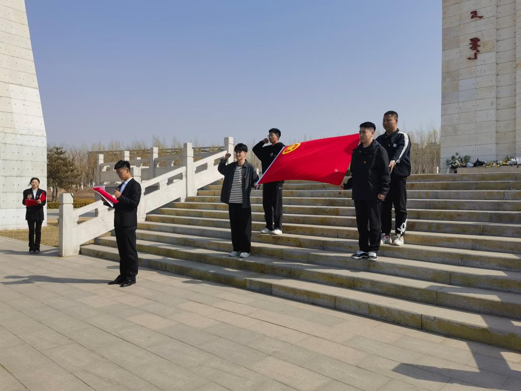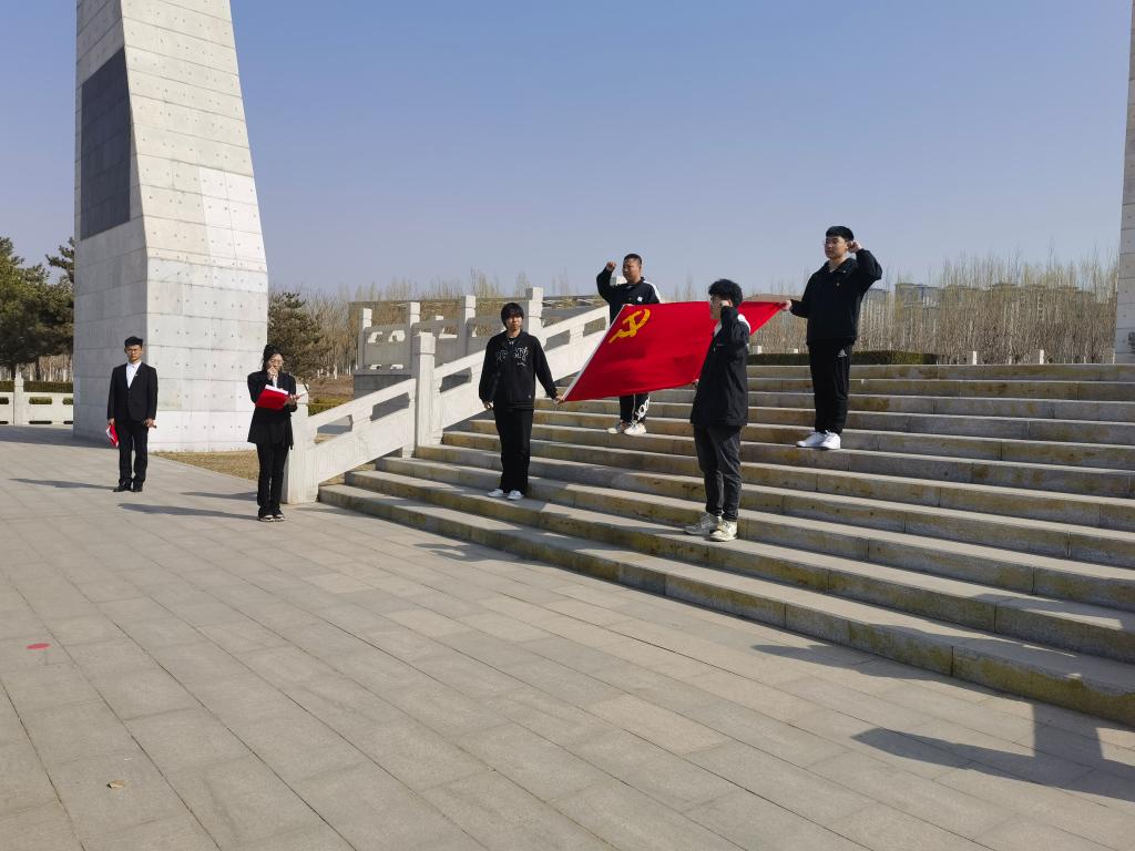 早春四月,井坪公园烈士纪念广场丰碑矗立,庄严肃穆。上午9时30分,仪式正式开始,同学们怀着崇敬的心情,来到井坪公园革命烈士纪念碑前,静穆肃立。当庄严雄壮的《义勇军进行曲》响起时,全体人员整齐列队,深情高唱中华人民共和国国歌。全体成员向革命烈士纪念碑肃立默哀三分钟,为保卫家乡,保卫祖国而献出生命的革命先烈表示沉痛的追思和哀悼。随后党员代表白娜和团员代表云婷婷先后发表演讲,讲述革命先烈的英雄事迹和伟大精神,来歌颂和缅怀先烈的爱国主义精神和无私奉献精神,坚定新时代青年要以实现中华民族伟大复兴为己任的决心。最后,党员和团员分别面向党旗和团旗进行宣誓,一句句铿锵有力的誓词,激发所有同学在回望党的光辉历程中保持奋进新征程的昂扬斗志。