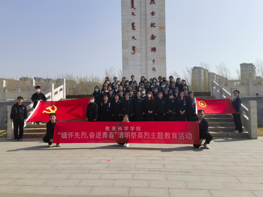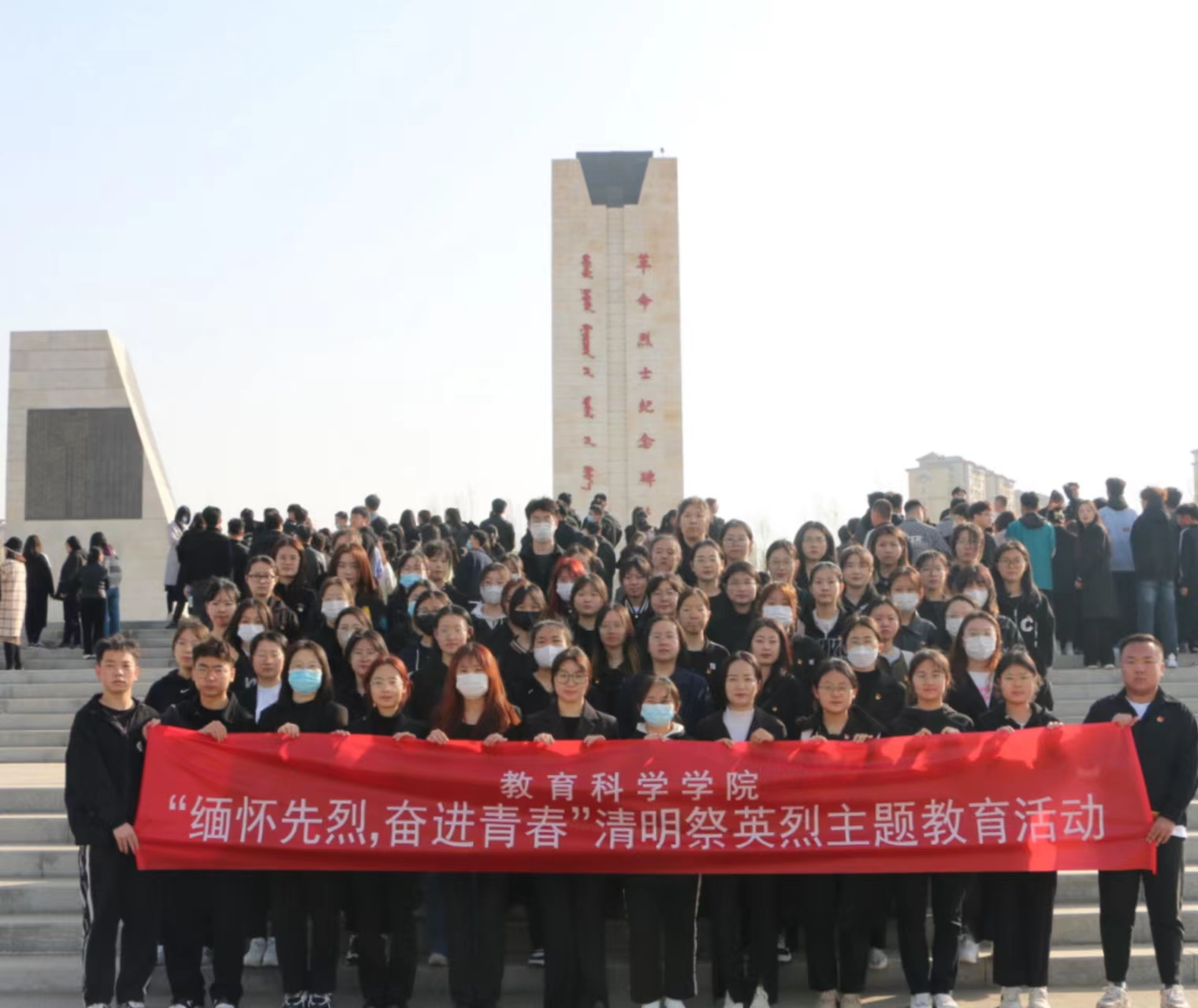清明时节祭忠魂,英雄豪气耀昆仑。清明将至,为了缅怀革命先烈,传承红色基因,强化爱国主义教育,2023年4月1日教育科学学院与信息科学与技术学院一同在包头市井坪公园举行了“缅怀先烈 奋进青春”清明祭先烈主题教育活动。教育科学学院部分党员、积极分子和团员代表参加了此次主题教育活动。
