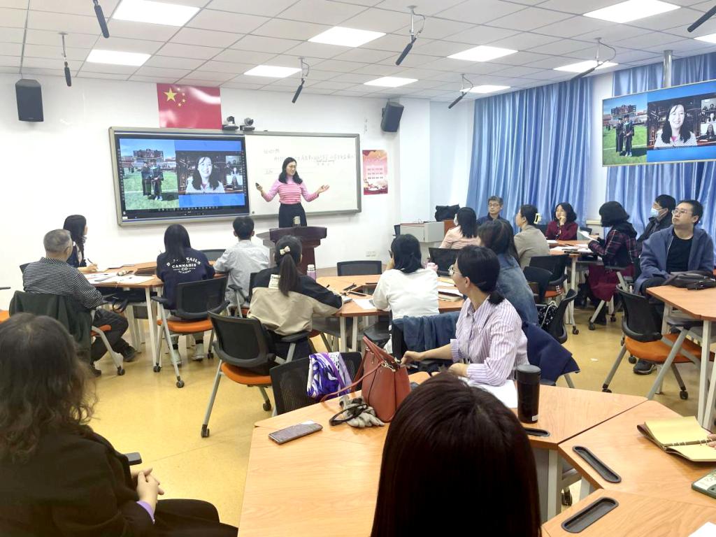 王妮博士就PBL的发展历史、存在的五大误区、现实的挑战以及PBL的七大核心设计要素等方面进行了分析和说明。王博士以项目式学习的模式开展培训,通过自己亲自实践过的教案和学案为例,以多媒体媒介为工具,与参会人员进行了现场的多维互动,深入浅出的分析和说明了PBL的基本概况,为培训人员拓宽了思路,打开了研究和教学的视野。通过项目式学习学术沙龙及培训,参会教师提升了对项目式学习及项目式教学模式的理解,培训推进了项目式教学的实操。