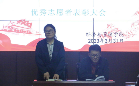 大会在热烈的气氛中落下帷幕。此次表彰大会不仅是对优秀学生志愿者的高度肯定,更是对我院学生的激励和鞭策。希望我院学子积极向优秀学生志愿者学习,形成拼搏向上、刻苦努力、吃苦耐劳的浓厚氛围,共同努力成长为担当民族复兴大任的时代新人,承担起实现中华民族伟大复兴的时代责任和历史使命。(经济与管理学院)