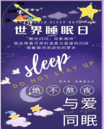 此次海报设计活动引发了参赛选手对于健康睡眠的思考,一定程度上加深了同学们对世界睡眠日的认识。睡眠是人体基本的生理需求,有保证机体生长发育、为机体蓄积能量、维持机体免疫等功能,通过此次活动,有利于促进同学们合理安排睡眠时间,从而保证充足、舒适的睡眠。关注睡眠质量就是关注生活质量,关注睡眠就是关注健康,愿大家都能有一个良好的睡眠!