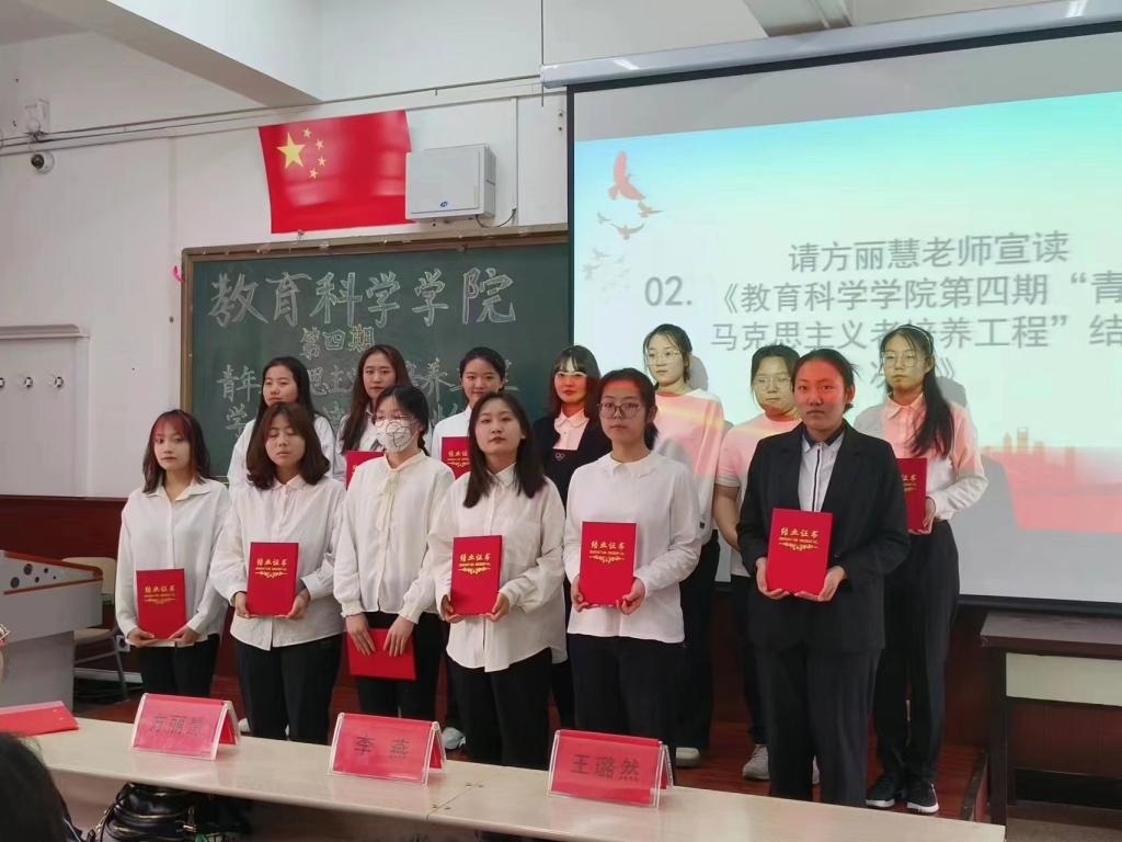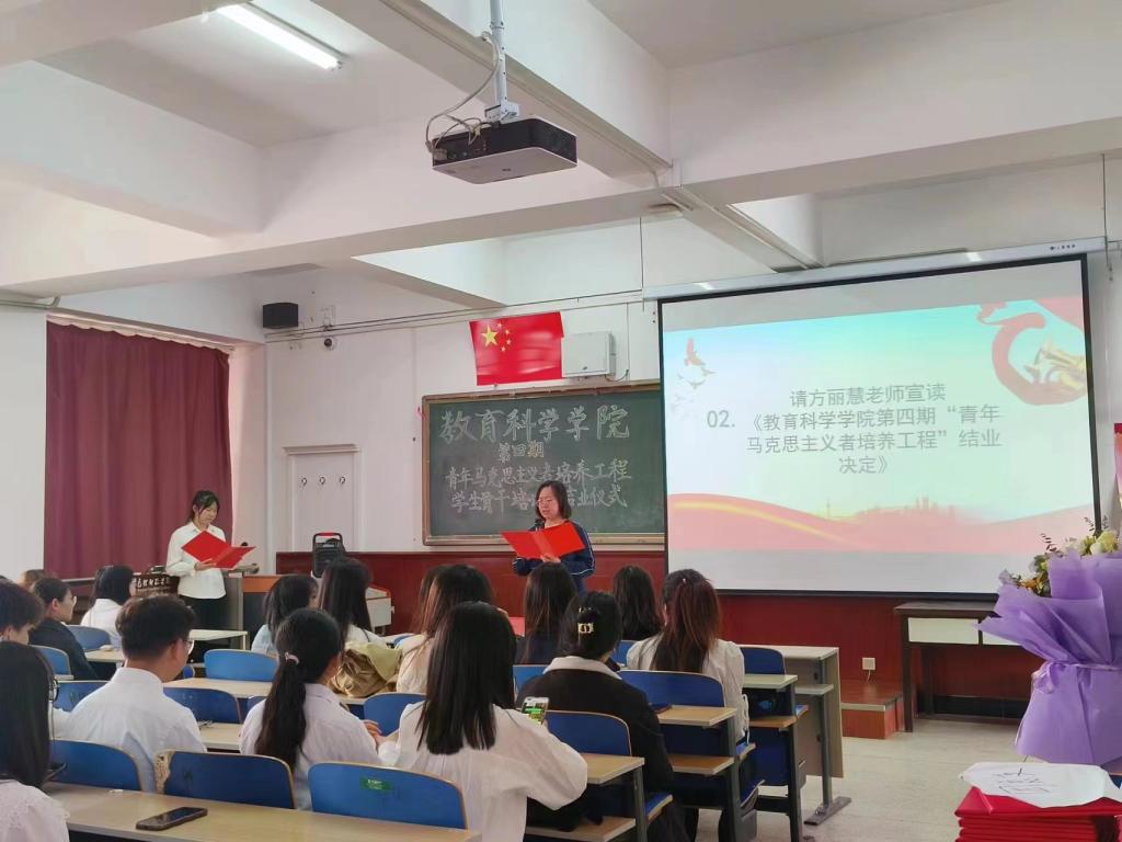 结业仪式共四项议程。第一项议程,团总支书记方丽慧宣读《关于教育科学学院第四期“青年马克思主义者培养工程”学生骨干培训班的结业决定》,准予141名参训学员结业,辅导员王璐然为学员代表颁发了结业证书。
