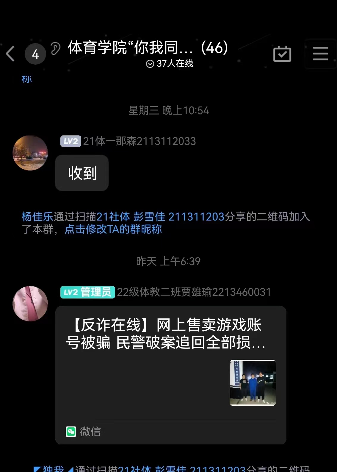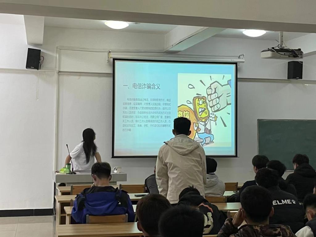线上线下同步开展反诈教育。通过微信群、QQ群推送诈骗案件预警信息、悬挂宣传横幅、进公寓宣讲反诈知识等多渠道开展信息安全教育,增强学生反诈意识。