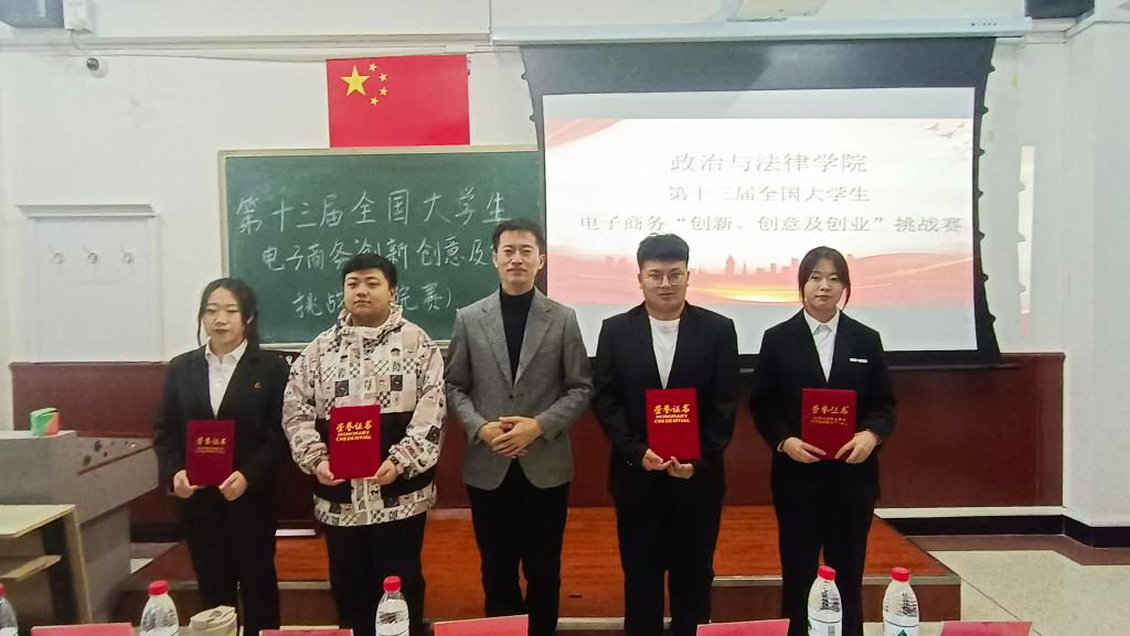 为贯彻落实学校举办“三创”挑战赛文件精神,增强大学生创新意识、创意思维和利用创新思维解决实际问题的创业能力,2023年4月6日,政治与法律学院在博学楼东609教室举办第十三届全国大学生电子商务“创新、创意及创业”挑战赛院赛,党总支副书记郭宏升、政治学与行政学系主任马慧、辅导员白丽、王健、赵鹏然老师担任本次大赛评委。来自四个年级的12支代表队参加了比赛。