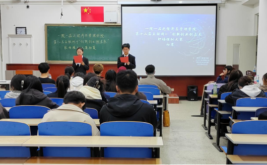 4月6日晚七点半,经济与管理学院大学生社团会职业创业规划部举办第十二届“互联网+”创新创业创未来职场模拟大赛初赛。邀请赵浩然、樊雅婷、张艳、依日格乐、赵毅担任评委,叶浩林和权林佳主持。