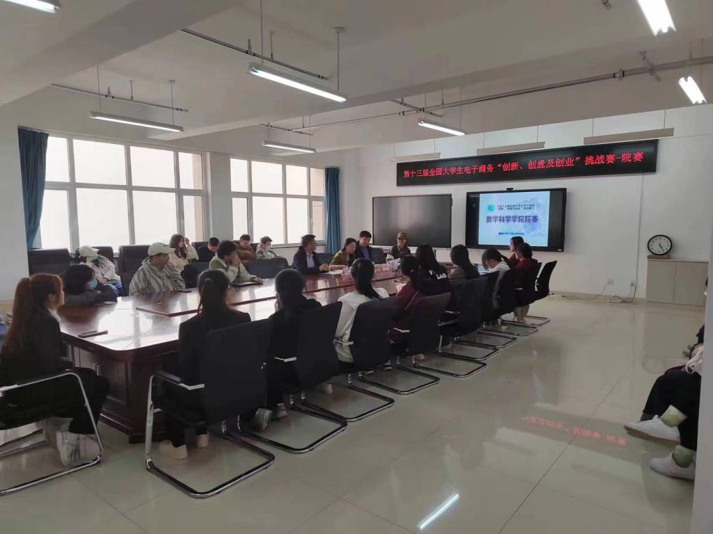 为贯彻落实学校举办“三创”挑战赛文件精神,增强大学生创新意识、创意思维和利用创新思维解决实际问题的创业能力, 4月10日,数学科学学院于实训楼14楼会议室,举办了第十三届全国大学生电子商务“创新、创意及创业”挑战赛院赛,邀请杨尚、赵广军、郭亚楠三位老师,担任本次大赛评委。参赛选手来自四个年级,共计14支代表队。
