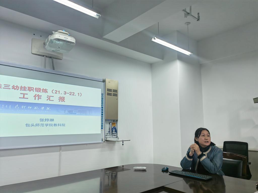 分享会上,四位挂职教师分别就自己一年的挂职工作和收获做了交流。按照学院制度要求,老师们在挂职期间主要参与了教学活动、集体教研活动、收集基础教育教学案例资源。同时在挂职期间老师们共发表教学相关论文4篇,立项教学科研项目3项,收集教学案例若干。其中张烨琳教授还为挂职幼儿园做了幼儿园教师发展的专题讲座,撰写了幼儿园教学指导建议,真正实现了高校和基础教育单位的协同共育。
