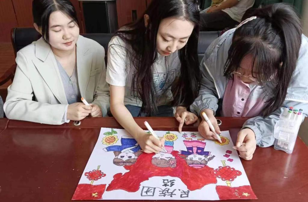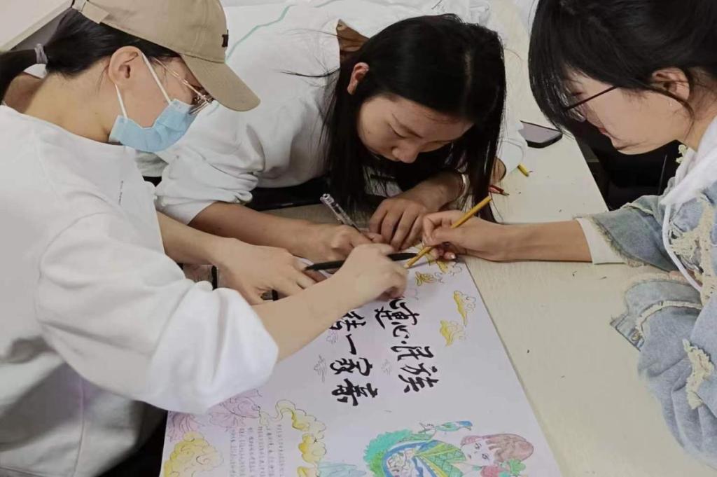 同学们画下的每一笔,象征着一个寝室的和谐有爱,“宿”说着民族团结一家亲的美好祝愿!
