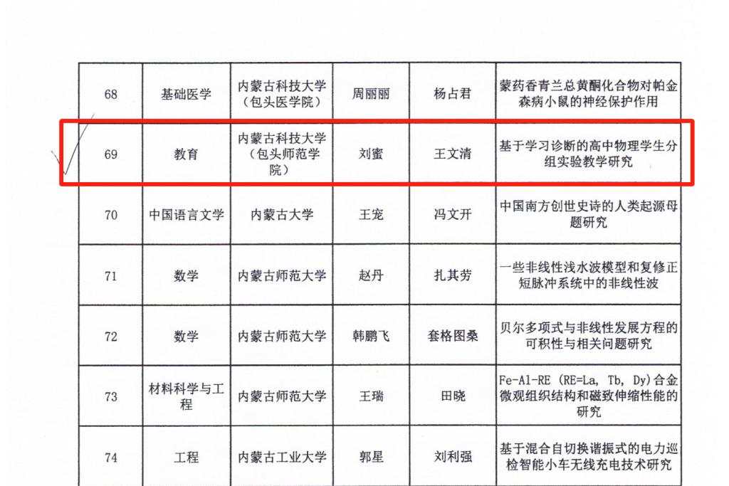 喜讯|物理科学与技术学院研究生刘蜜同学的毕业论文入选2021年度内蒙古自治区优秀硕士学位论文