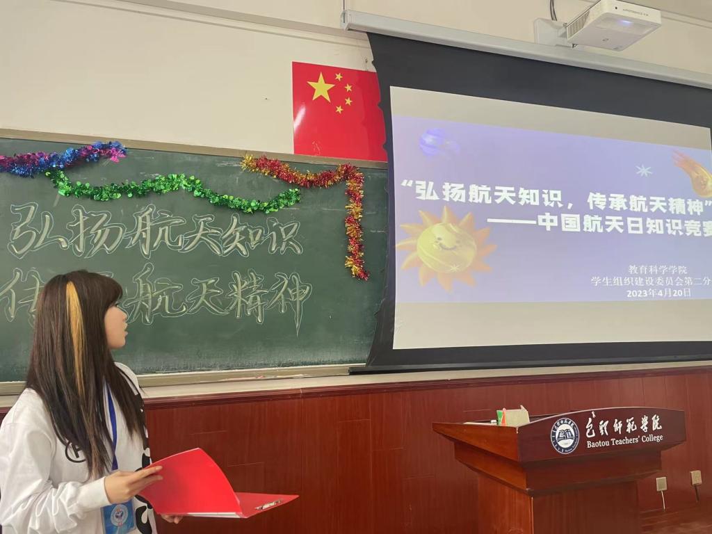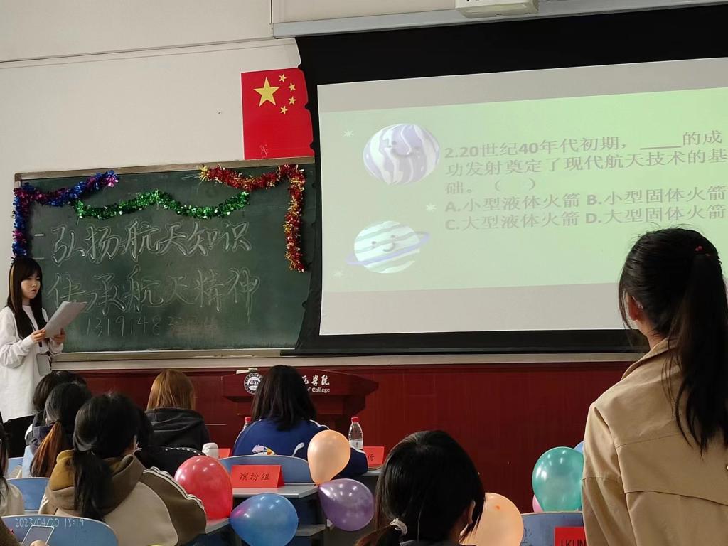 4月24日是中国航天日,为了弘扬中国航天精神,普及航空航天知识,激发广大学生崇尚科学、探索未知、敢于创新的热情,教育科学学院于4月20日在博东203举办“弘扬航天知识,传承航天精神”中国航天日知识竞赛活动。