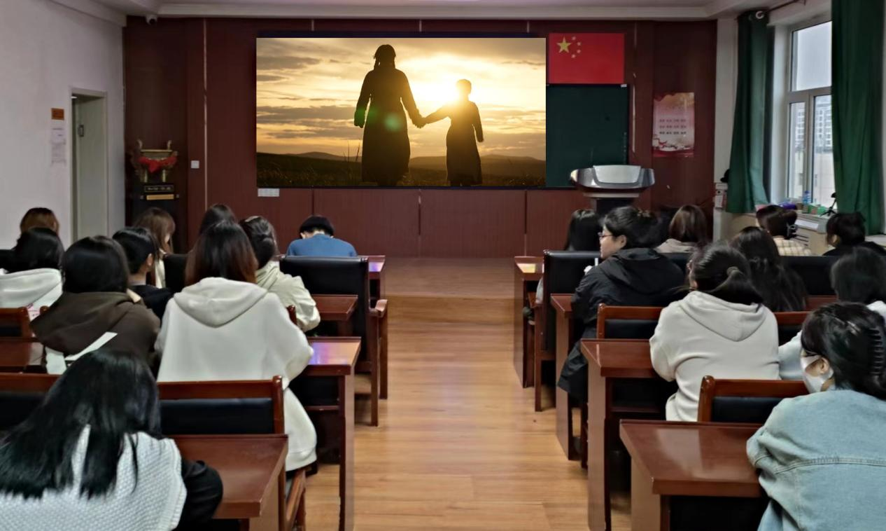 影片讲述了上世纪六十年代初“三千孤儿入内蒙”的故事,“虽然我们素未谋面,但养育了同一个女儿……”。这段故事跨越时空、跨越山海、跨越民族,同学们被故事中所展现的民族大爱和民族团结的强大精神力量所感染。