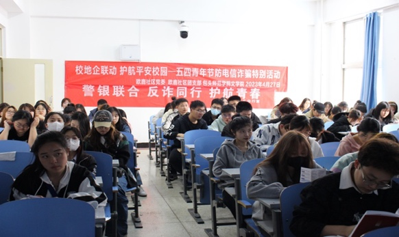 为增强我院学生的辨别能力和防诈骗意识,保护学生的财产安全不受侵犯,我院特举办“校地企联动护航平安校园—五四青年节”防电信诈骗特别活动。