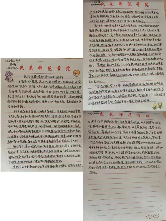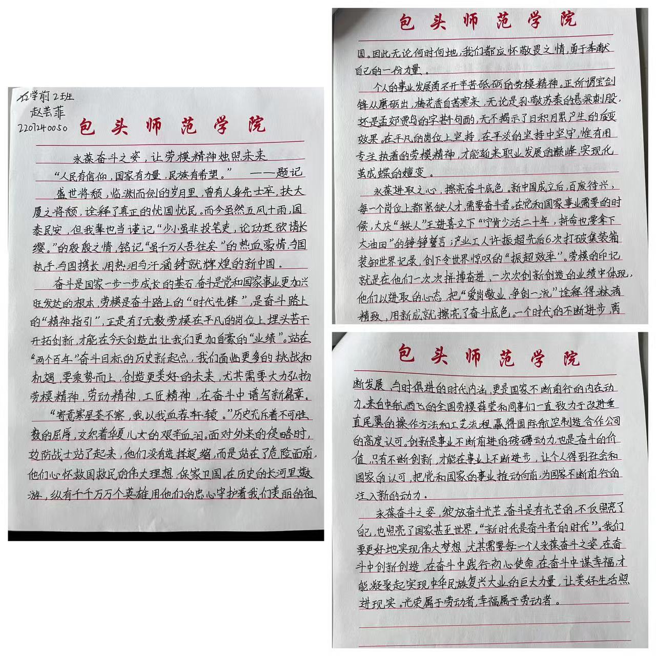 为深入学习宣传贯彻党的二十大精神和习近平总书记关于弘扬劳模精神、劳动精神、工匠精神的重要指示精神,进一步激发奋进力量,教育科学学院于5月1日-5月3日举办了“弘扬劳模精神,争做时代先锋”主题征文活动。