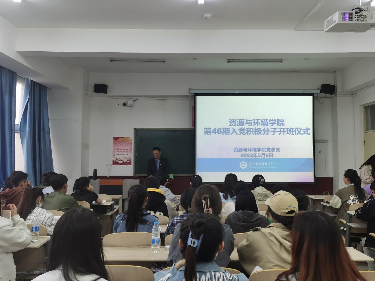 5月6日晚19:15,资源与环境学院在博东407室举行了第46期入党积极分子培训班开班仪式,学院各年级共计48名入党积极分子参加了本次开班仪式。