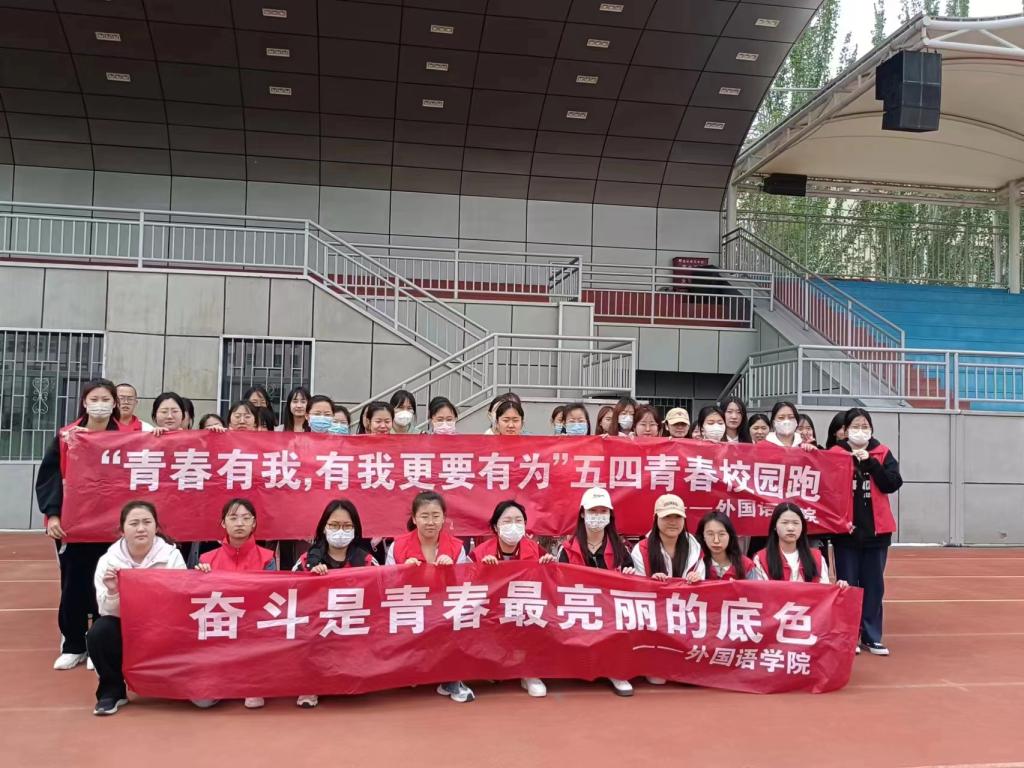 为深入学习贯彻党的二十大精神,大力弘扬“五四精神”,培养青年学生坚持不懈、凝心聚力的精神品质。5月4日,外国语学院在田径场举办了“青春有我,有我更要有为”五四青春校园跑活动。