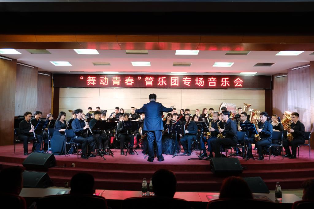 首先开场的是“舞动青春”交响管乐团专场音乐会,本场音乐会选曲都是耳熟能详,旋律优美,律动十足,深受同学们喜爱的作品,由王红兴老师执棒指挥,音乐会最后萨克斯桑巴舞紧扣音乐会主题,台上台下共同舞动,将现场气氛推向高潮。