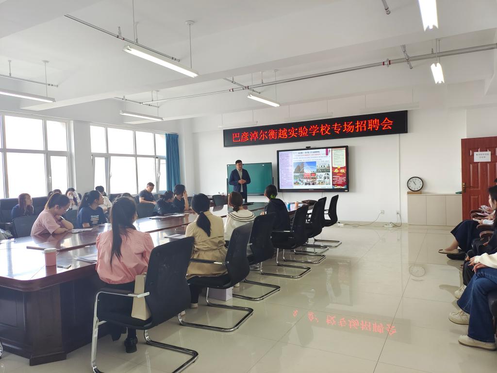 为助力毕业生高质量充分就业,5月18日,数学科学学院举办巴彦淖尔市衡越实验中学专场招聘会,数学、物理、化学等9个专业将近30位毕业生到场参加。