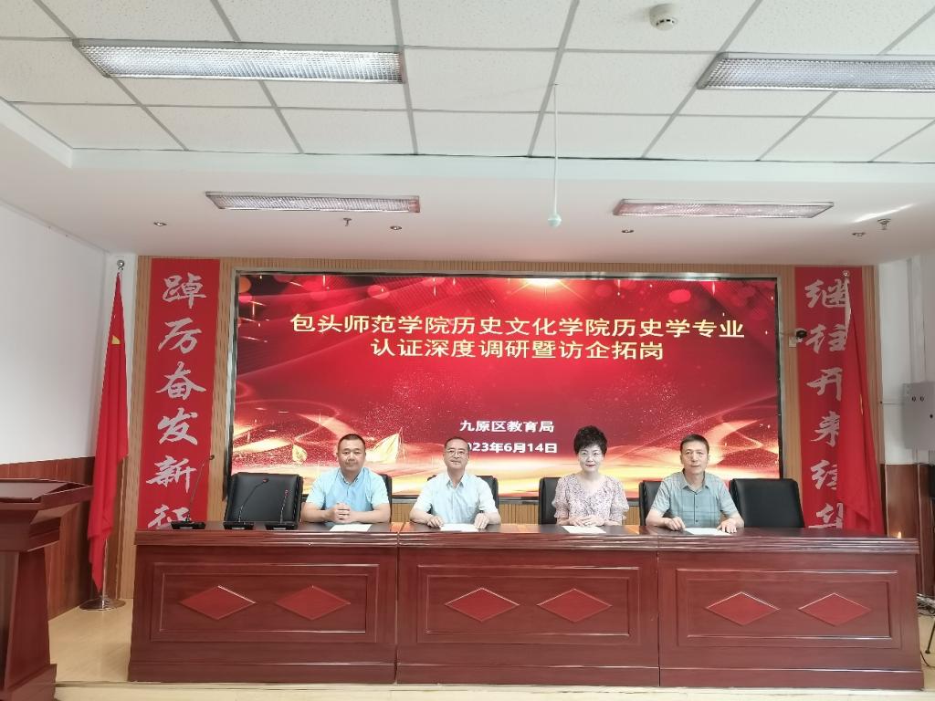 根据2023版本科人才培养方案修订相关要求,为了构建更高水平人才培养体系,进一步提升历史文化学院历史学专业人才培养质量,同时,拓宽历史学专业毕业生就业渠道,全力促进毕业生更高质量就业。2023年6月14日,历史文化学院院长郝建平、副书记吴冰、历史系主任刘晓堂赴九原区教育局开展“2023版人才培养方案修订调研论证会”和“访企拓岗促就业”专项调研工作,详细了解教育管理部门对人才培养的需求。九原区教育局教师工作科科长贾例蓉出席本次调研会。