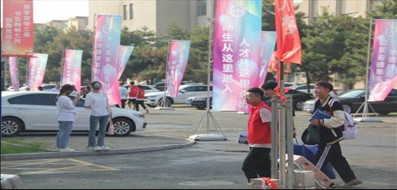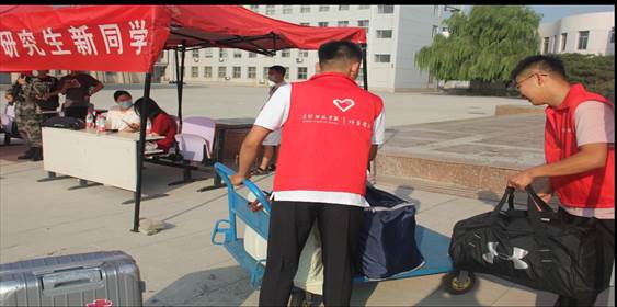 志愿者们分工明确,协调配合,热情的接过新生手里的行李,耐心地与家长沟通,为家长及时安排座位休息,领着新生穿梭于报名登记、军训服领取等地点,帮助新生高效、愉快地办理好入学手续,全方位的志愿服务真正做到让新生满意、让家长放心。