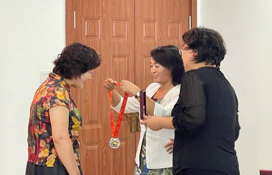 第一项议程是退休教师荣休仪式。刘醒君为三位退休教师颁发了荣退勋章,青年教师为荣退教师献上鲜花,武合新老师代表荣退教师发表了感言。