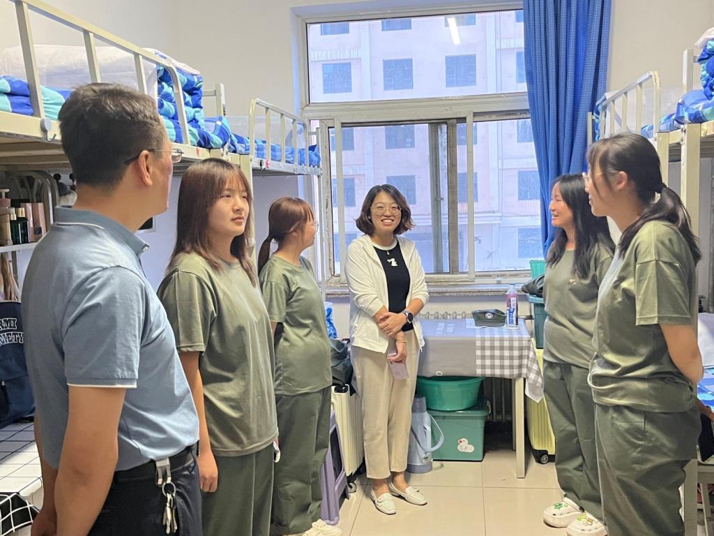 为进一步了解2023级新生的思想动态、心理状况、军训及生活情况,帮助新生尽快适应新生活、新环境。9月14日,外国语学院党总支书记李培欣、党总支副书记丁坤、学工办负责人门宇,辅导员王剑、陈晨深入13号楼、9号楼学生宿舍,走访看望2023级新生。