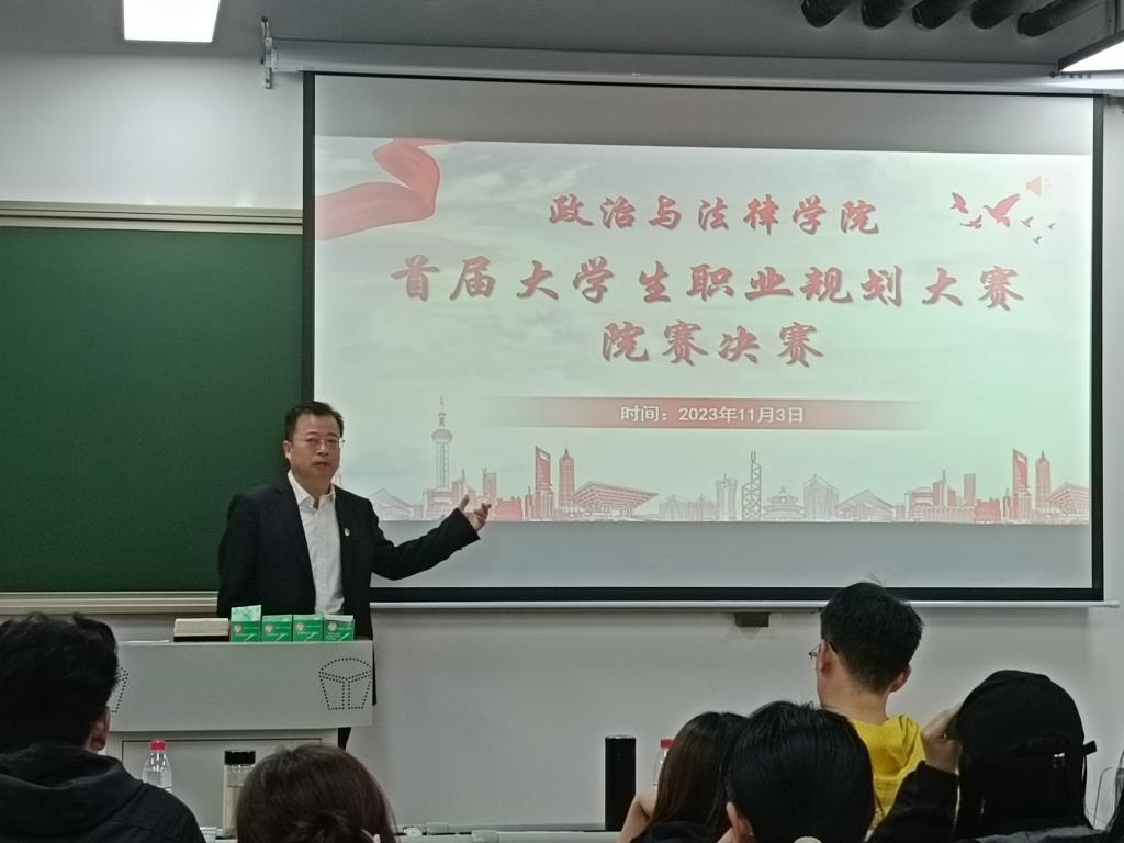 为了增强大学生生涯规划意识,提高大学生求职实践能力,促进大学生高质量充分就业,挖掘自身潜力实现自我价值。11月3日下午,政治与法律学院在九原校区综合楼203教室举办了政法学院首届大学生职业规划大赛院级决赛。学院党总支副书记郭宏升,学工办主任袁爱荣,辅导员白丽、赵鹏然担任本次比赛的评委。2023级部分同学在场观看了本次比赛。