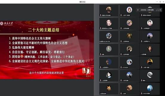 学习围绕党的二十大报告确立的重大理论观点和重大战略思想;全面学习贯彻习近平新时代中国特色社会主义思想,弘扬伟大建党精神为内容展开。学生党员分享学习心得表示将以习近平新时代中国特色社会主义思想为纲领,结合实践,牢记使命,从历史经验中汲取智慧,筑梦前行。