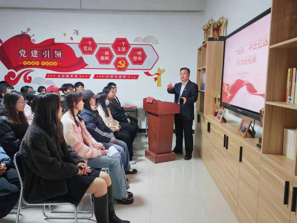 为了充分发挥学生党员在“一站式”学生社区建设中的先锋模范作用,引导青年学生坚定不移听党话、跟党走,11月23日晚上,政法学院在“一站式”学生社区党员工作站开展了学生党员讲党课活动。活动由学院党总支副书记郭宏升主持,各班正式党员、预备党员、考察对象、入党积极分子代表,在党员工作站现场参会,其他学生在腾讯会议线上参加了活动。