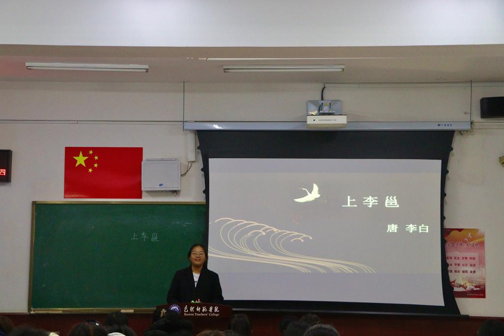 经典如星河闪闪,诗词若溪水潺潺。为弘扬中华优秀传统文化,推动中华经典诗词的阅读与传播,从中华经典中汲取智慧力量。文学院于11月30日下午在博学楼101教室举办“书香盈怀袖,诗教沁人心”诗教大赛决赛。本次比赛初赛全校共报名54名同学,通过初赛的激烈角逐,最终有10位选手成功入围决赛。文学院赵彩娟老师、郁慧娟老师、佟桂芬老师出席本次决赛并担任评委。